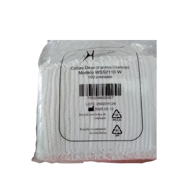 Cofia Blanca Desechable, Pack 100 Unidades