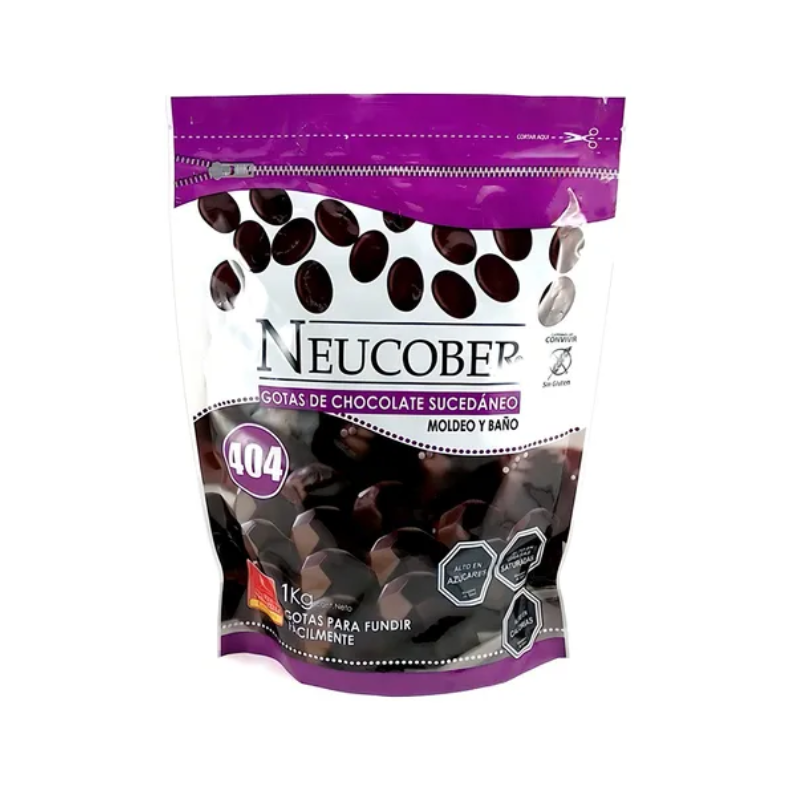 Gotas de chocolate para derretir, sabor semi-amargo; ideal para decorar y trabajar con moldes en la repostería.